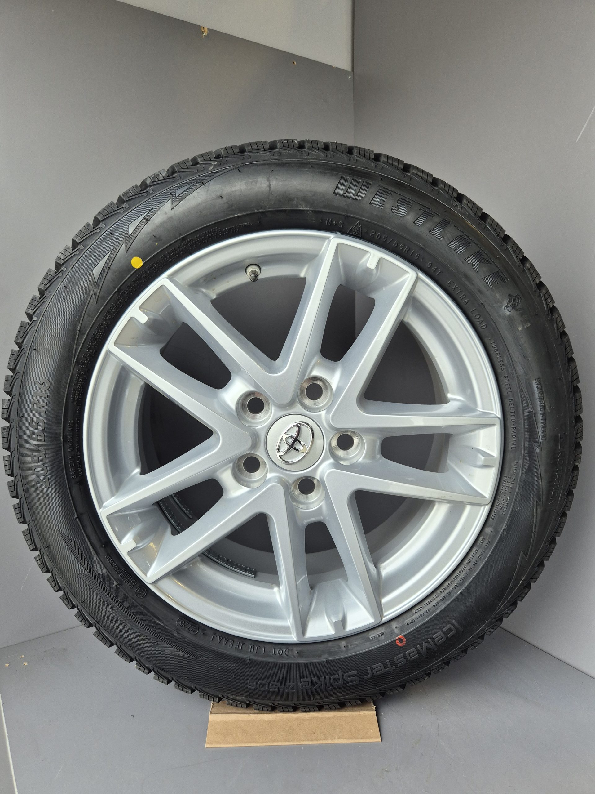 Toyotan alkuperäiset vanteet 6,5×16″ 5×114,3 jaolla, ET 45, kr 60,1. Westlake Icemaster Spike Z-506 nastarenkailla 205/55-16, DOT 2725.